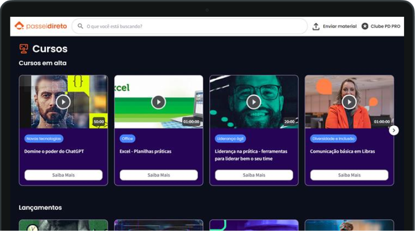 Com o Passei Direto Premium, você tem acesso ilimitado aos +30 milhões de materiais do Passei Direto, Inteligência Artificial que tira dúvidas na hora. Como bônus você tem acesso as ferramentas de estudo e pode gerar gabaritos, exercícios exclusivos, resumos em texto e áudio, flashcards e mapas mentais dos materiais de estudo; +400 cursos para sua carreira com temas como Excel, IA, Comunicação, Liderança e muito mais; e um curso de inglês completo com professores nativos para você alcançar a fluência.